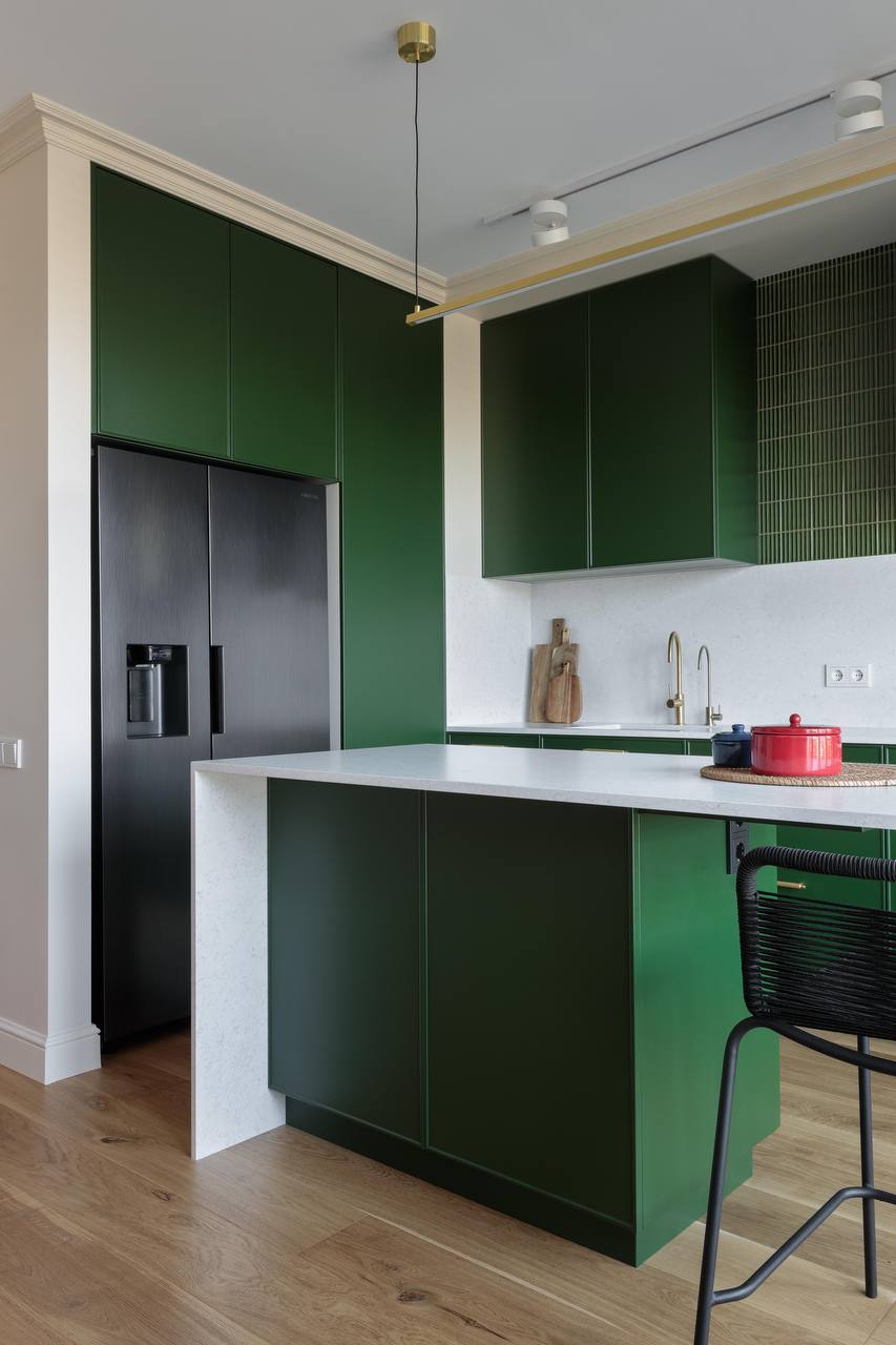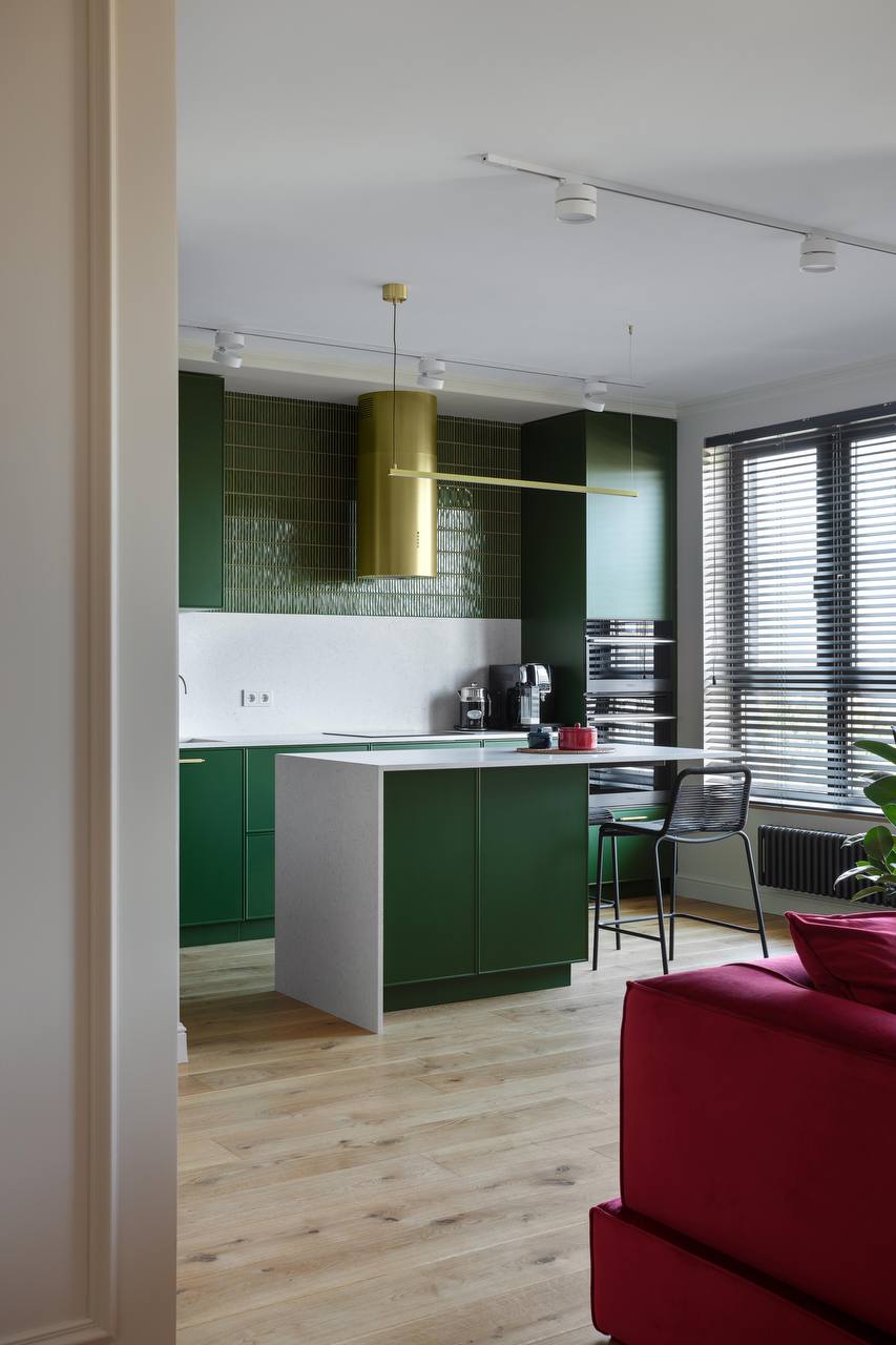 Why a Dark Green Kitchen Works in a Light Apartment Interior