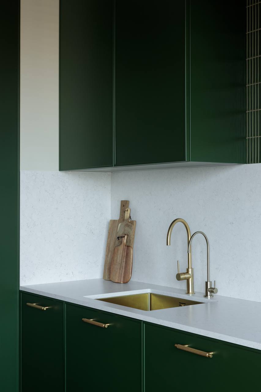 • Longevity and character: green stays relevant beyond trends and elevates the kitchen above standard neutral solutions.
