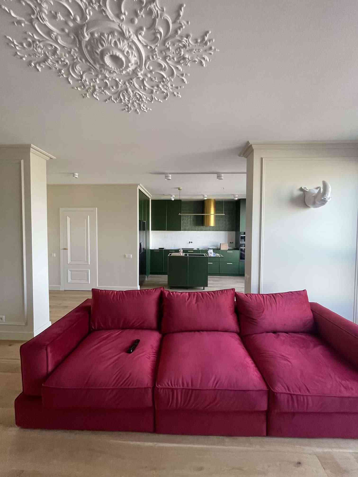 Rimmart is a modern classic apartment renovation in the heart of Kyiv, combining an interior design project with turnkey renovation management. The client is the founder and jewelry designer behind the renowned Ukrainian brand Rimmart. The goal was to create a light, elegant, detail-driven interior with a highly functional layout, refined mouldings, and strong yet balanced color accents.